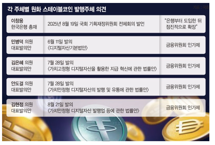 은행중심 vs 인가제… 스테이블코인 발행주체 '동상이몽'