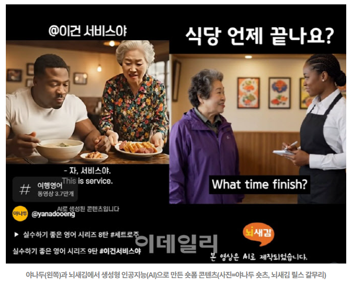 “자, 서비스야”…1000만뷰 빵 터진 할머니 영어 AI 숏폼