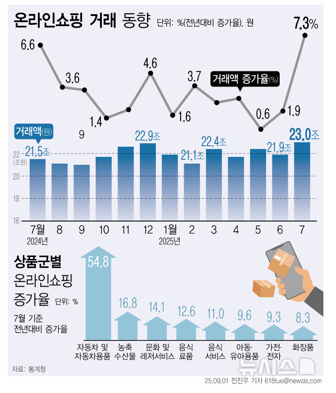 [그래픽] 7월 온라인 쇼핑 7.3%↑…'티메프 사태' 이후 최대폭 증가