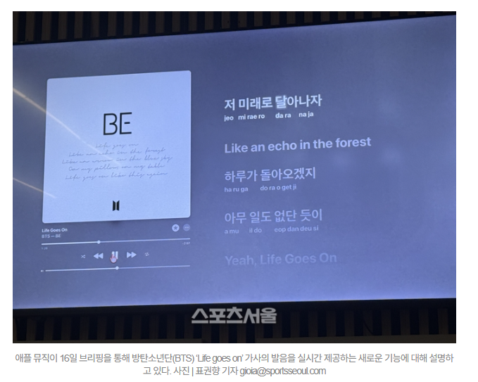 애플 뮤직, K-팝 열풍에 맞손…실시간 번역·발음 기능 추가 [SS현장]